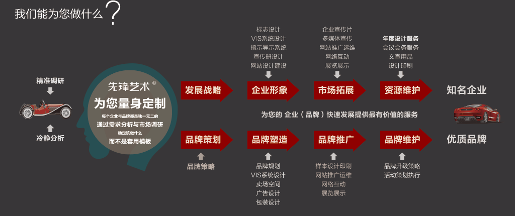 我們協助企業提升企業形象、優化產品風格、洞悉市場機遇、發展品牌資產、成就客戶價值;杜絕華而不實,杜絕紙上談兵 !